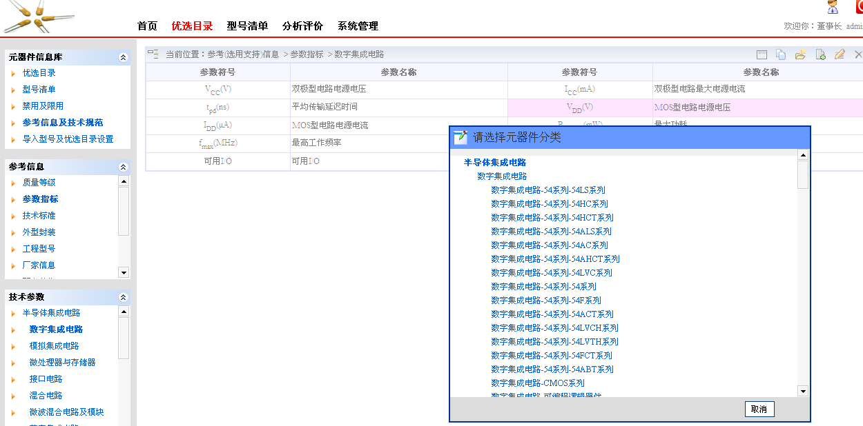 电子元器件型号优选目录信息管理系统