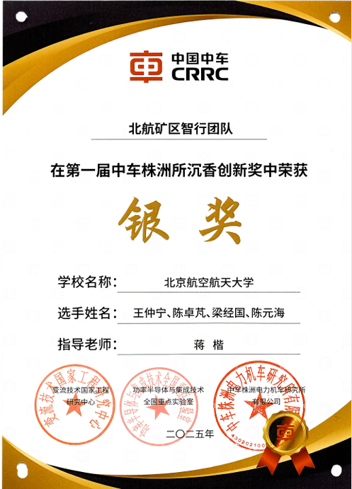 2025年4月,中车株洲电力机车研究所有限公司举办了第五届科技节及第一届沉香创新奖决赛。世界杯体育官方网站智能检测与诊断中心组建的矿区智行团队在全国顶尖高校的激烈竞争中,凭借“矿区智行系统创新项目”荣获沉香创新奖银奖。