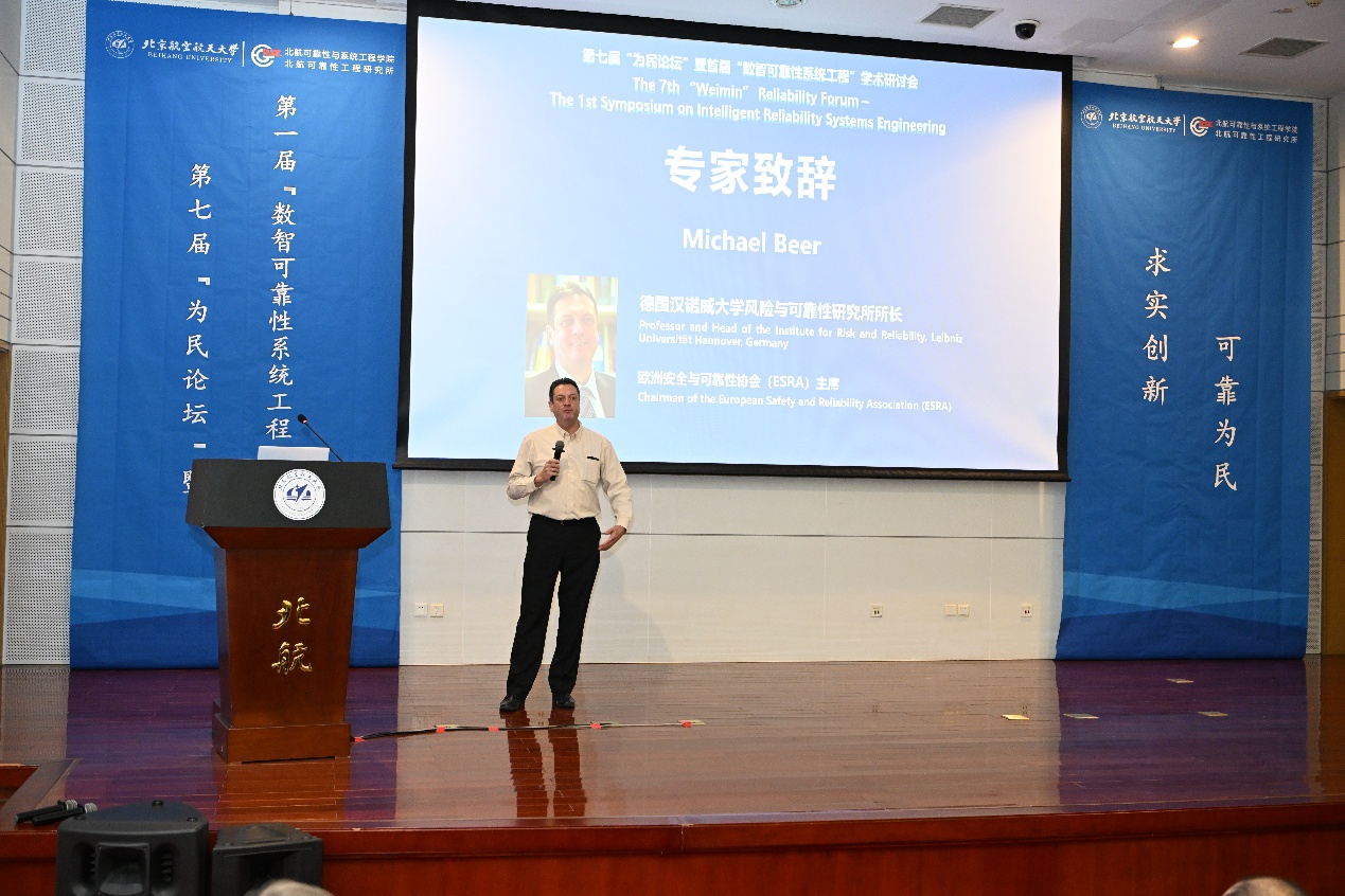 Michael Beer作开幕致辞,他高度评价了北航在可靠性研究领域的国际影响力,并表示期待通过此次研讨会进一步深化欧洲与中国学界在智能可靠性方法、不确定性建模等方向的合作。