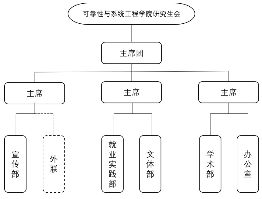 院研究生会由办公室、文体部、学术部、宣传部和就业实践部五个部门组成: